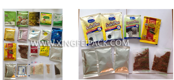 适用于食品,医药,化工产品中的松散,无粘性,细小颗粒状,物料的自动包装,如:汤料,冲剂,干燥剂,味精,白糖,麦片等。