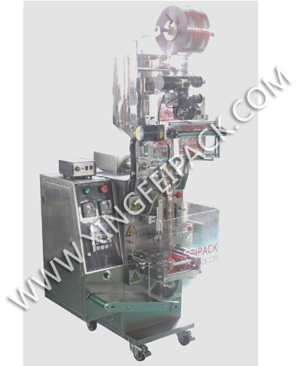 包装机产品广泛使用于食品、医药、保健、化工、化妆品等行业的颗料状物品、粉末状物品、液体半流体物料计量包装的小袋包装机。