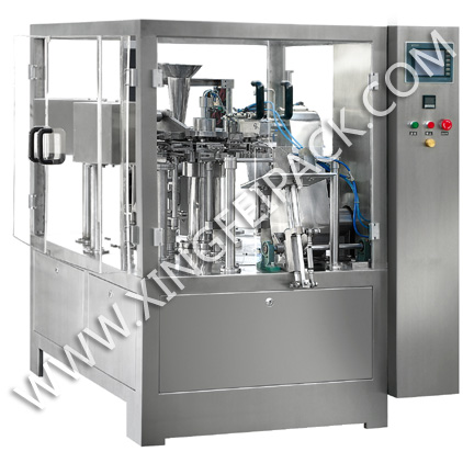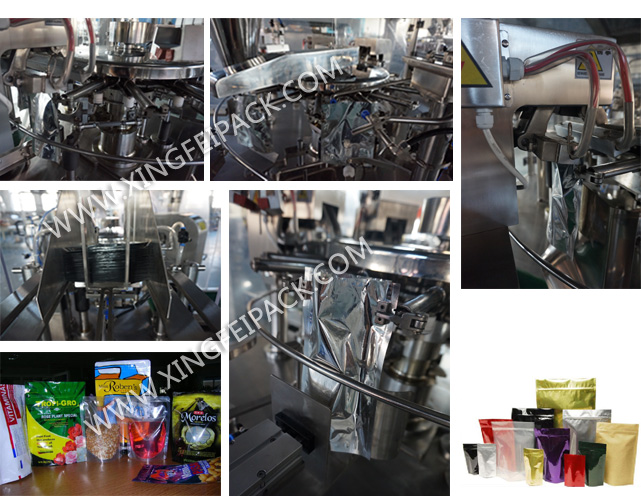 本机适用于平面袋,自立袋,拉链袋等各种形状的热封的复合袋, 与各种计量机配套,可进行颗粒,粉剂,液体等物料的包装。