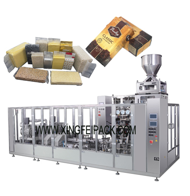 六面体真空包装机可实现全自动上料、称重、制袋、整形、抽真空、封口、剪袋口、成品输送于一体,将散放物料包装成为具有高附加价值的定重成型的六面体小包装。包装速度快,运行稳定。该机组广泛应用于食品、制药等行业的真空包装,如大米杂粮等谷物类产品以及咖啡酵母等粉料的真空包装,袋型美观,密封效果好,便于装盒、装箱或直接零售.