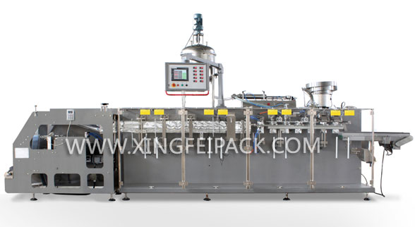 全自动水平式包装机是一款水平式全自动卷膜成型袋包装机,是集制袋、计量、灌装、封口于一体的全新自动包装机。以热封性复合膜材料为外包装,配置各种不同的灌装头,可对粉状、颗粒、液体、粘稠体等不同的物料进行三边封或四边封包装。