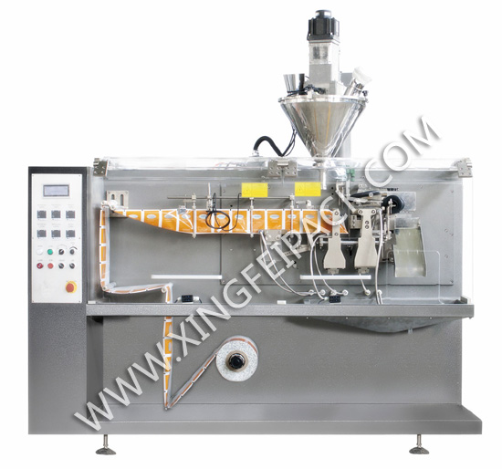 特点:本机采用电脑控制,具有生产效率高,适应性强,可靠性稳定性高,包装的产品外观挺直美观封口处不沾液,不沾粉,牢固不破,封口强度高等特点,是食品,制药,日化,农药和饲料等行业理想的包装机械。