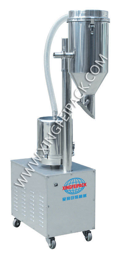 真空上料机由真空泵〔无油、无水〕,不锈钢吸料咀、输送软管、布袋过滤器〔或316L不锈钢过滤器〕,振打清理器〔或压缩空气反吹装置〕、真空料斗和料位自动控制装置等组成,整套系统设计合理、制造精美。真空加料机用于包装机、压片机加料和用于混合机加料时,配置略有不同,用户在订货时需作出说明