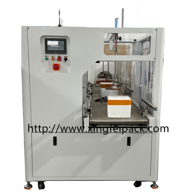 在线泡沫箱封箱机,采用气动控制,通过可调摇把将胶带调整至封箱位置,触摸屏选择对应型号,按启动按钮就可自动封胶带。方便人工直接打包产品,从而省去人工封箱,省去人工繁重重复的工作。设备操作简单、调节方便、稳定耐用!广泛应用于生鲜包装、电商包装。