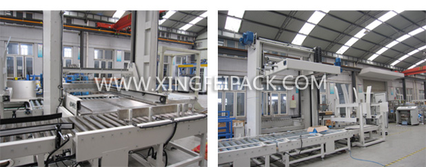 采用触摸屏操作,PLC控制,可对纸箱的排列方式,堆垛层数、托盘供应及输出设定。