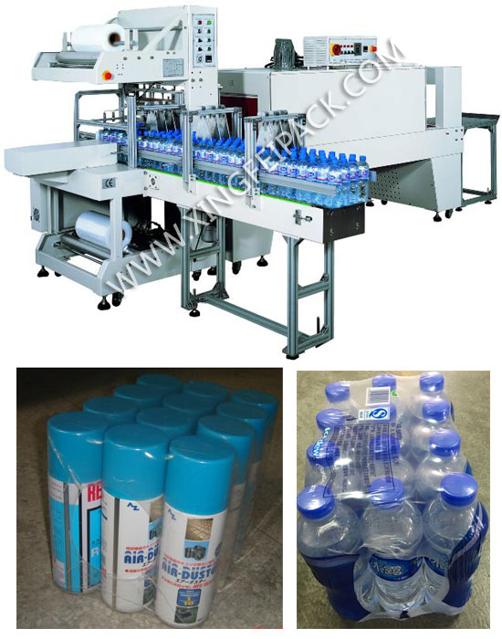 本机 采用四进料的形式,进料可选择单排、双排及三排,能根据客户的需要将包装物自动进行包裹,封切,热收缩,冷却定型,,全套动作一次完成。整套设备电器及气动元件采用国内外知名品牌如:OMORAN,SICK,NOGER,MITSUBISHI等。产品经过包装后具有外观整洁,紧凑不散,保证物品质量及长途运输需要。适合易拉罐、玻璃瓶、啤酒矿泉水、饮料等各种瓶装产品的无底托入收缩包装;同时也与恒温PE收缩机配套使用,使物品达到收缩的包装效果,适用于PE、PVC等热收缩包装。